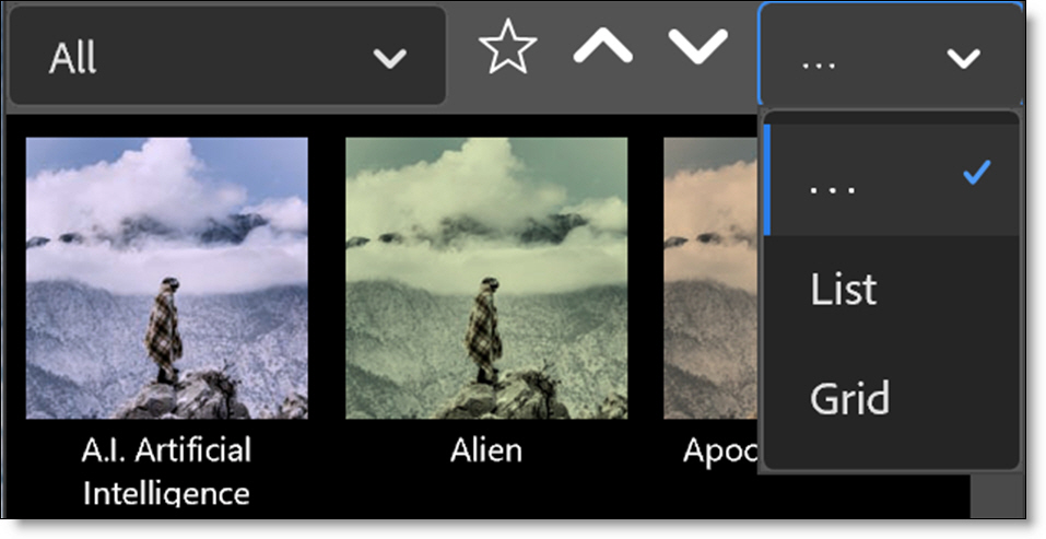 Selects either a List or Grid view when displaying presets.